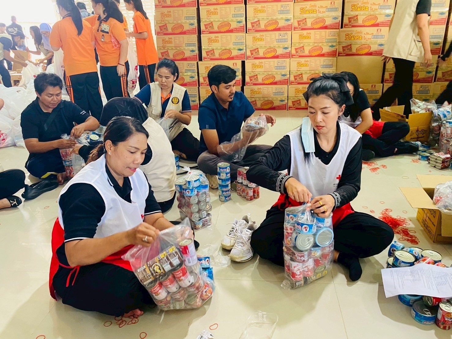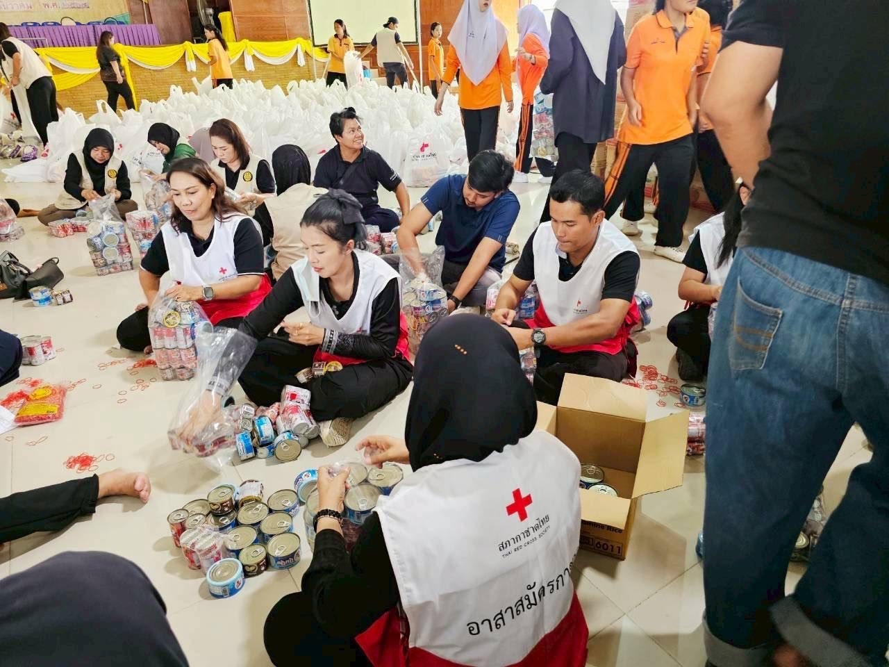 วันที่ 6 ธันวาคม 2568 ณ ศาลากลางจังหวัดสงขลาอาสาสมัครสภากาชาดไทย จำนวน 25คน ปฏิบัติงาน บรรจุชุดเครื่องอุปโภคบริโภค 655 ชุด เพื่อจัดเตรียมส่งมอบสู่ประชาชนที่ประสบอุทกภัย