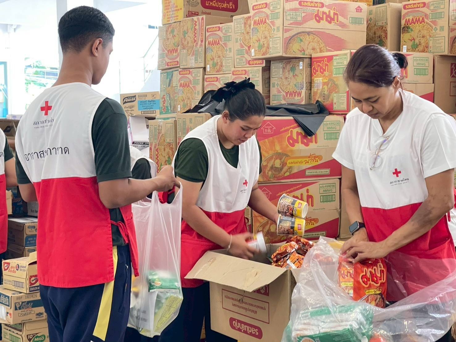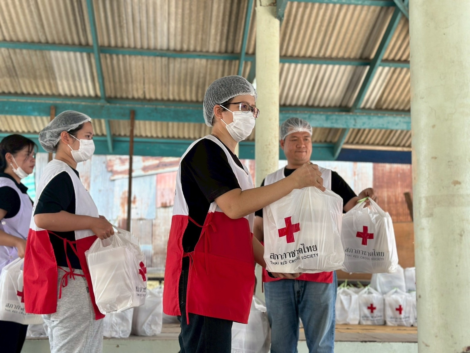 วันที่ 10 ธันวาคม 2568 อาสาสมัครสภากาชาดไทย ยังคงปฏิบัติภารกิจในการช่วยฟื้นฟูผู้ประสบภัย ในจังหวัดสงขลา โดยอาสาสมัครฯ ปฏิบัติภารกิจในการร่วมขนย้ายและแจกจ่ายอาหารปรุงสุกให้แก่ประชาชนในเขตเทศบาลนครหาดใหญ่ (เขต 3) จำนวน 10,000 กล่อง และบรรจุถุงยังชีพ จำนวน 763 ชุดณ ศาลากลางจังหวัดสงขลา เพื่อเตรียมส่งมอบแก่ประชาชน ทั้งนี้ มีอาสาสมัครฯ ร่วมปฏิบัติภารกิจ จำนวน 25 คน