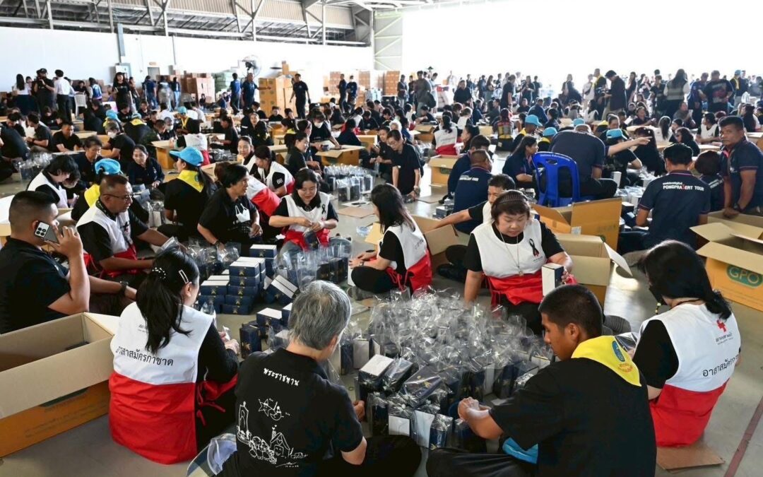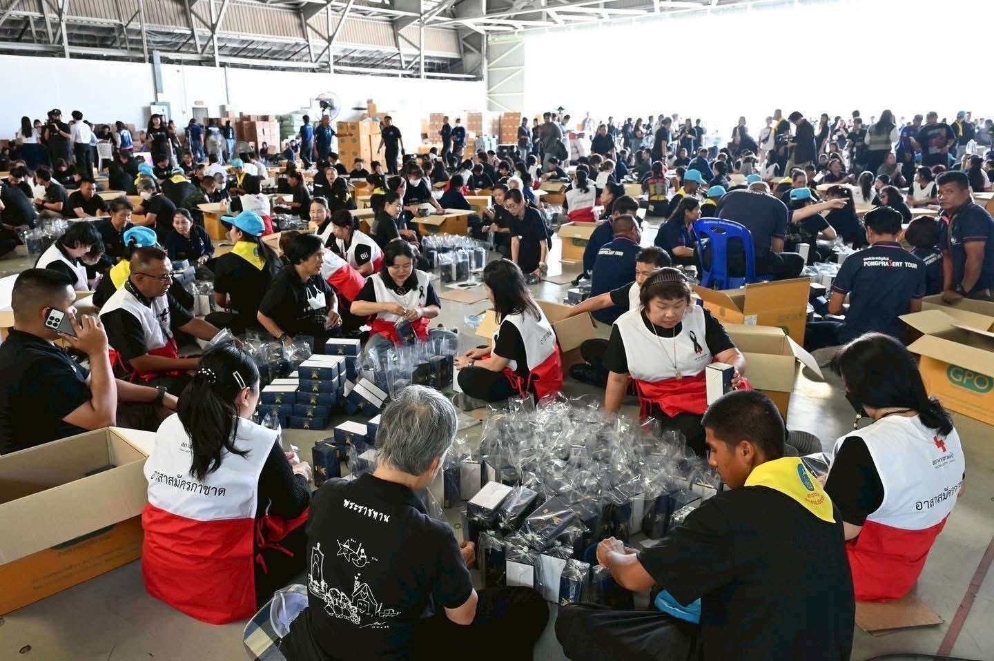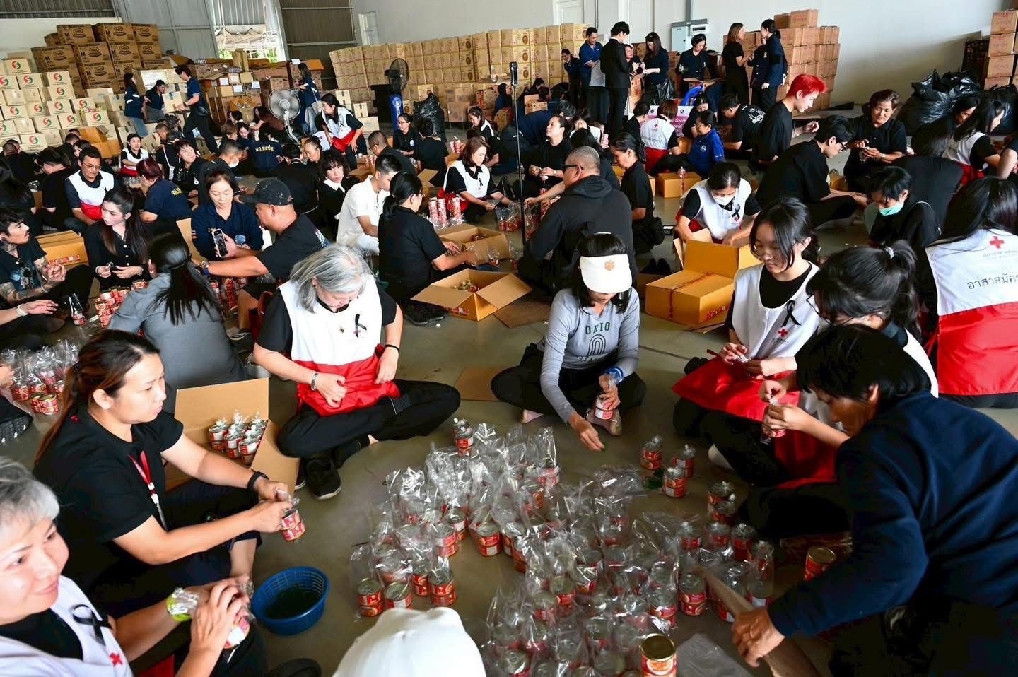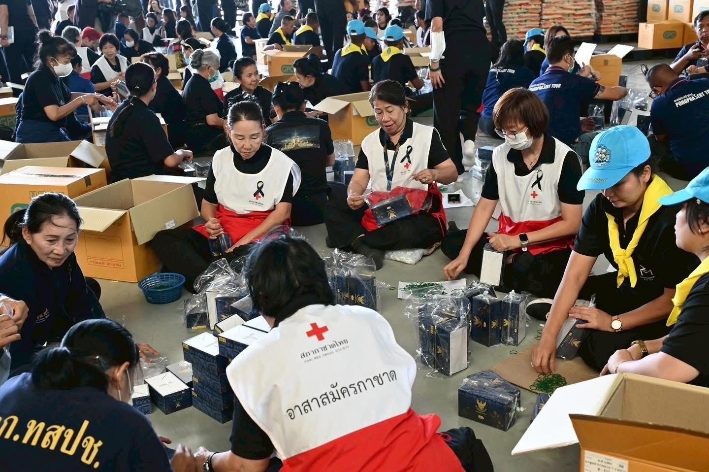 อาสาสมัครสภากาชาดไทย จำนวน 160 คน ร่วมกับ มูลนิธิอาสาเพื่อนพึ่ง (ภาฯ) ยามยาก สภากาชาดไทย ได้ร่วมแรงร่วมใจกันจัดเตรียมสิ่งของอุปโภคบริโภค และบรรจุ