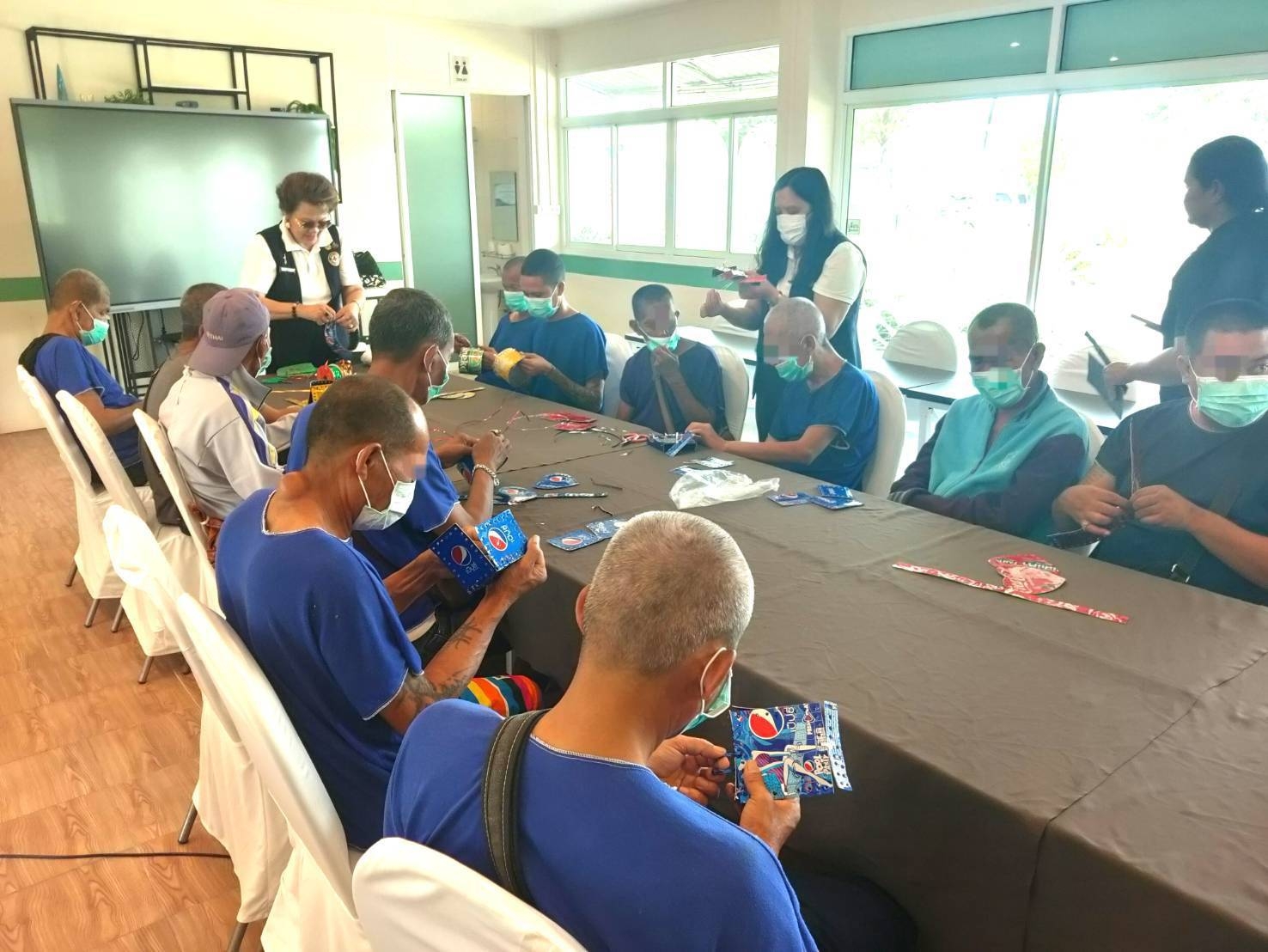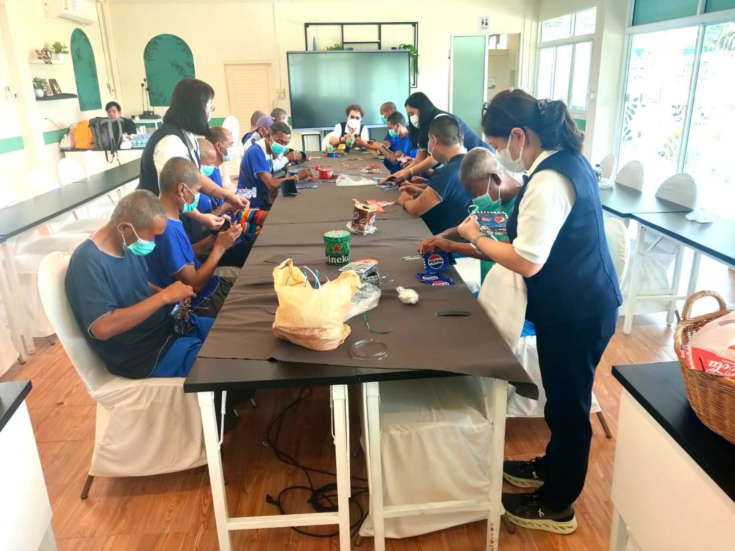 วันที่ 20 มกราคม 2569 กิจกรรม “สร้างมูลค่าเพิ่มเสริมรายได้ ” สำนักงานยุวกาชาดและอาสาสมัครกาชาด สภากาชาดไทย ร่วมกับสถานคุ้มครองชายไร้ที่พึ่งธัญบุรี จังหวัดปทุมธานี จัดกิจกรรมสาธิตการทำภาชนะอเนกประสงค์จากวัสดุเหลือใช้มุ่งเน้นการฟื้นฟูสมรรถภาพและสร้างทักษะอาชีพแก่ผู้รับบริการจำนวน 30 คน เพื่อสร้างรายได้และส่งมอบความสุขรับศักราชใหม่ โดยคณะอาสาสมัครกาชาด สอนสาธิตกิจกรรมดังกล่าวเพื่อให้เกิดการใช้เวลาว่างให้เกิดประโยชน์ผ่านกระบวนการเรียนรู้ทางศิลปะและการประดิษฐ์ โดยการนำ “กระป๋องเครื่องดื่มที่ใช้แล้ว” มาผ่านกระบวนการรีไซเคิลออกแบบเป็นภาชนะอเนกประสงค์รูปแบบต่างๆ การเปลี่ยนวัสดุเหลือใช้ให้เป็นของมีค่า ไม่เพียงแต่ช่วยลดปริมาณขยะ แต่ยังเป็นการฝึกสมาธิ พัฒนาทักษะฝีมือ สร้างความภาคภูมิใจในตัวเองให้แก่ผู้เข้าร่วมกิจกรรม และยังสามารถสร้างรายได้ จากการจำหน่ายเป็นของที่ระลึกในโอกาสต่างๆ ต่อไป