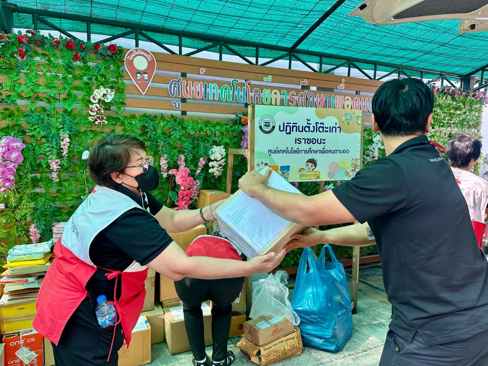 การรวบรวมปฏิทินตั้งโต๊ะเก่าที่ได้รับบริจาคจากทุกภาคส่วน และส่งมอบให้กับ ศูนย์เทคโนโลยีการศึกษาเพื่อคนตาบอด โดยมี นางชนิดาภา เพ็ชรรักษ์ ผู้อำนวยการศูนย์เทคโนโลยีการศึกษาเพื่อคนตาบอด เป็นผู้รับมอบ