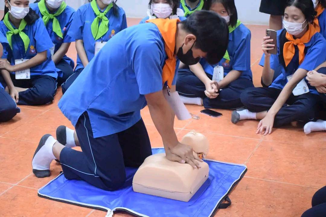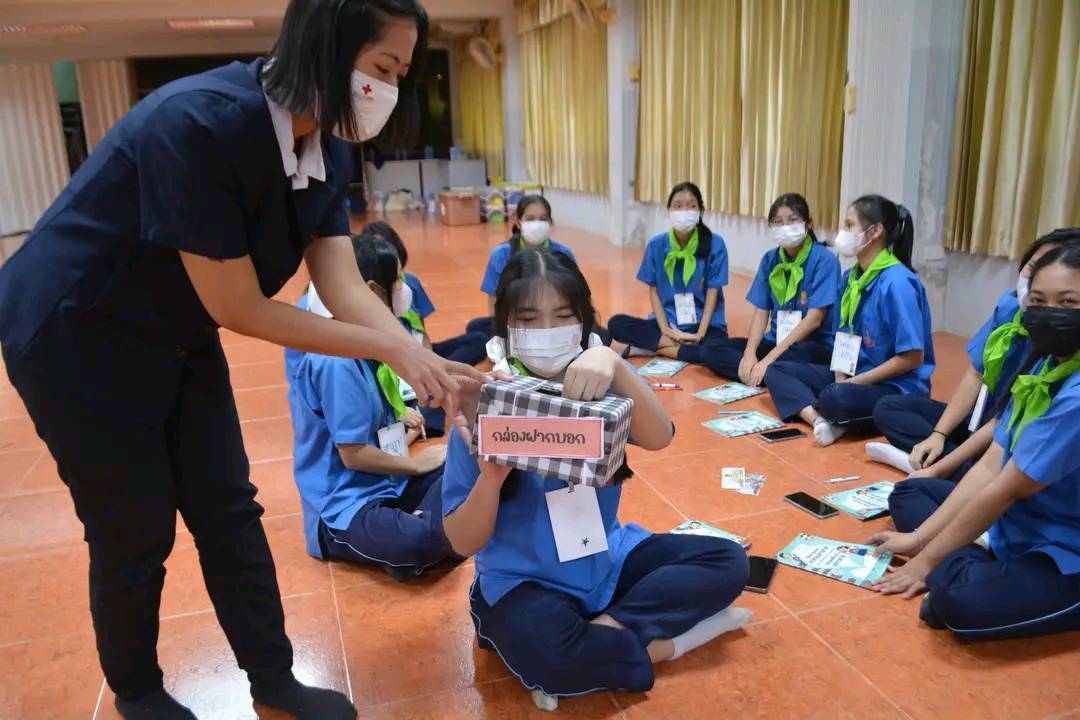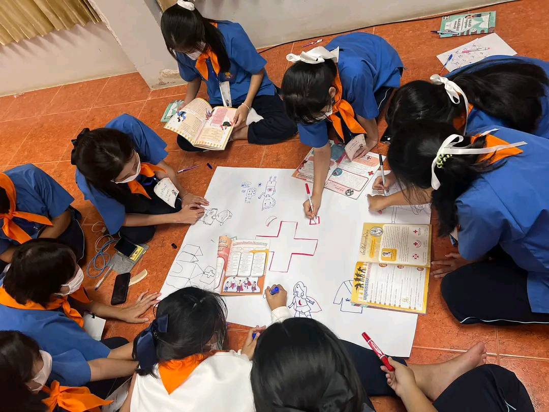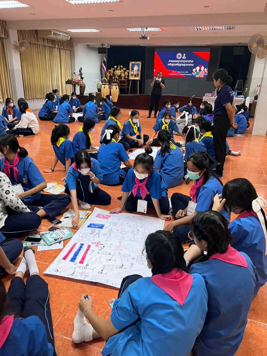 วันที่ 9 พฤศจิกายน 2566 คณะอาสาสมัครกาชาด “โครงการอาสาสมัครกาชาดร่วมใจพัฒนาชุมชนและสังคม” พร้อมด้วยเจ้าหน้าที่ฝ่ายพัฒนายุวกาชาดและอาสาสมัครกาชาด จัดกิจกรรมสอนเด็กหญิงจำนวน 21 คน พับมาลัยบุญ ณ สถานแรกรับเด็กหญิงบ้านธัญญพร อำเภอธัญบุรี จังหวัดปทุมธานี เพื่อนำไปทำบุญถวายพระที่วัด พร้อมนำแมสสีดำและของรางวัลไปแจกเด็กๆ ที่ทำผลงานได้สำเร็จ