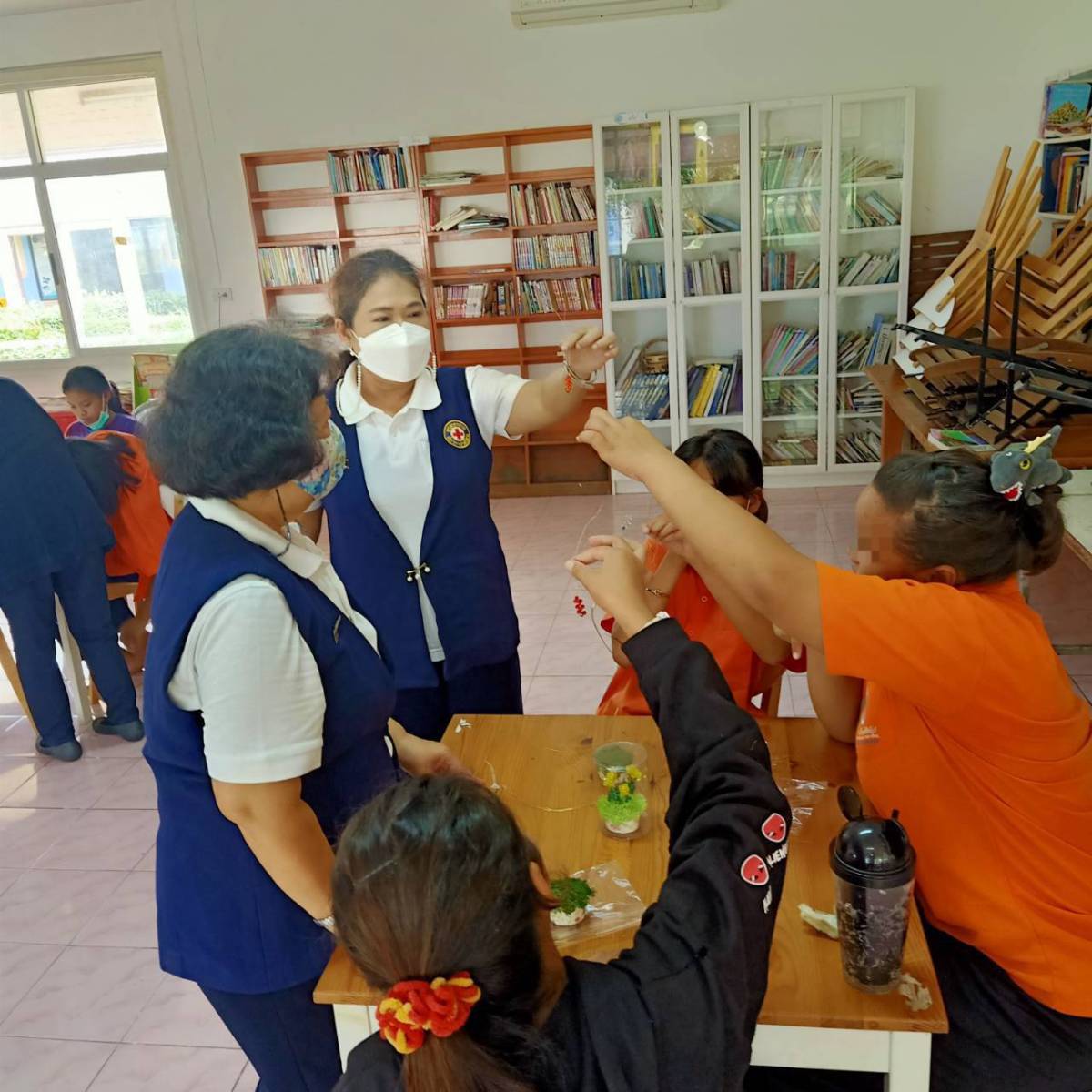 วันที่ 9 พฤศจิกายน 2566 คณะอาสาสมัครกาชาด “โครงการอาสาสมัครกาชาดร่วมใจพัฒนาชุมชนและสังคม” พร้อมด้วยเจ้าหน้าที่ฝ่ายพัฒนายุวกาชาดและอาสาสมัครกาชาด จัดกิจกรรมสอนเด็กหญิงจำนวน 21 คน พับมาลัยบุญ ณ สถานแรกรับเด็กหญิงบ้านธัญญพร อำเภอธัญบุรี จังหวัดปทุมธานี เพื่อนำไปทำบุญถวายพระที่วัด พร้อมนำแมสสีดำและของรางวัลไปแจกเด็กๆ ที่ทำผลงานได้สำเร็จ