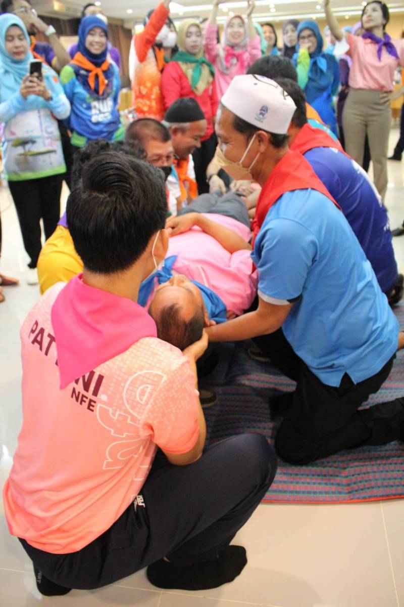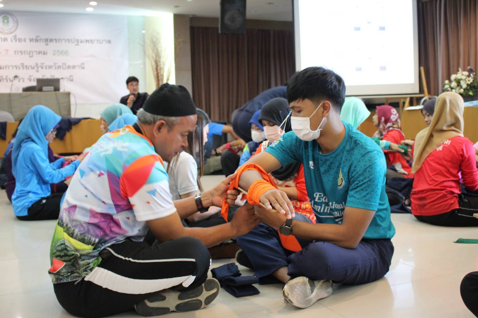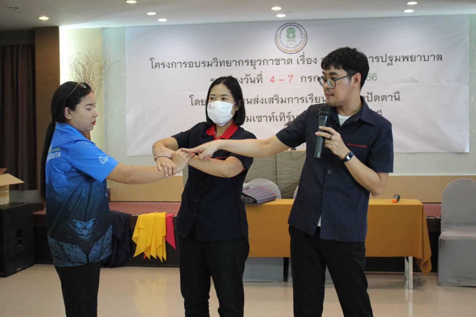 สำนักงานยุวกาชาดและอาสาสมัครกาชาด สภากาชาดไทย ร่วมกับสำนักงานส่งเสริมการเรียนรู้จังหวัดปัตตานี ดำเนินโครงการจัดอบรมวิทยากรยุวกาชาด เรื่องการปฐมพยาบาลให้แก่ครูศูนย์ส่งเสริมการเรียนรู้จากอำเภอต่างๆ ในจังหวัดปัตตานีและบุคลากรสำนักงานส่งเสริมการเรียนรู้จังหวัดปัตตานี รวมทั้งสิ้น 63 คน ระหว่างวันที่ 4-7 กรกฏาคม 2566 ณ โรงแรมเซาท์เทิร์นวิว ปัตตานี อำเภอเมือง จังหวัดปัตตานี
